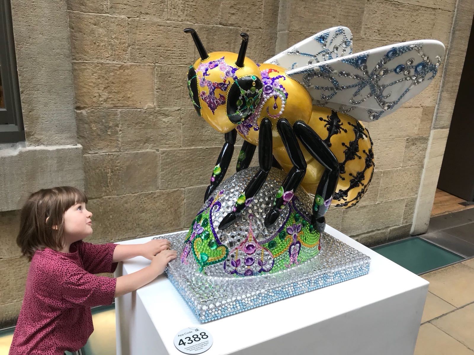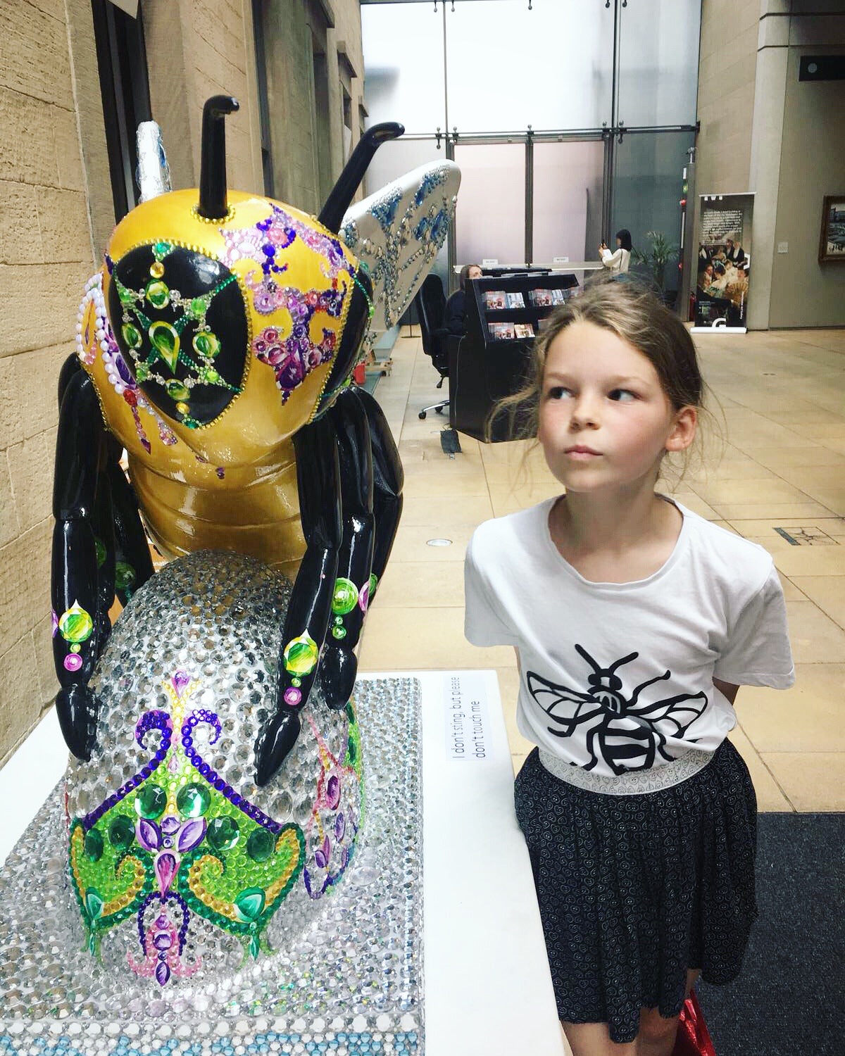 If Manchester had its own set of of crown jewels what would they be? What would they look like? What story might they tell? The Crown Jewels bee sculpture depicts a great pile of suffragette jewels guarded by a bejewelled, suffragette bee. The piece explores historical polticial jewellery and enshrines the colours green, purple and white as Manchester's unofficial crown jewels. Crown Jewels pays homage to the legacy of Mancunian activism and feminism.